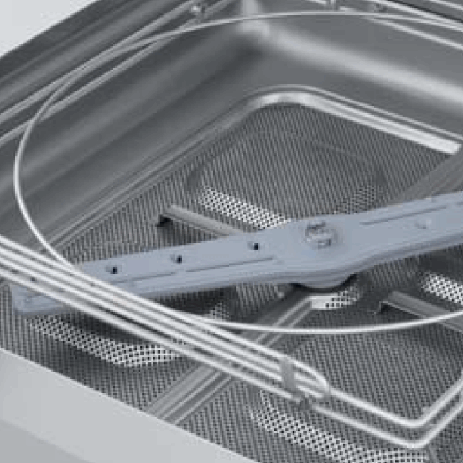 I de fleste opvaskemaskiner tømmes vandet fra toppen af vaskekarret ved hver vask. I vores Premium model tages vandet fra bunden idet beskidte vand er tungere end rent vand – dræningen foregår FØR der skylles med nyt rent vand – det giver en reduktion af partikler / fødevarerester på mere end 35 %.